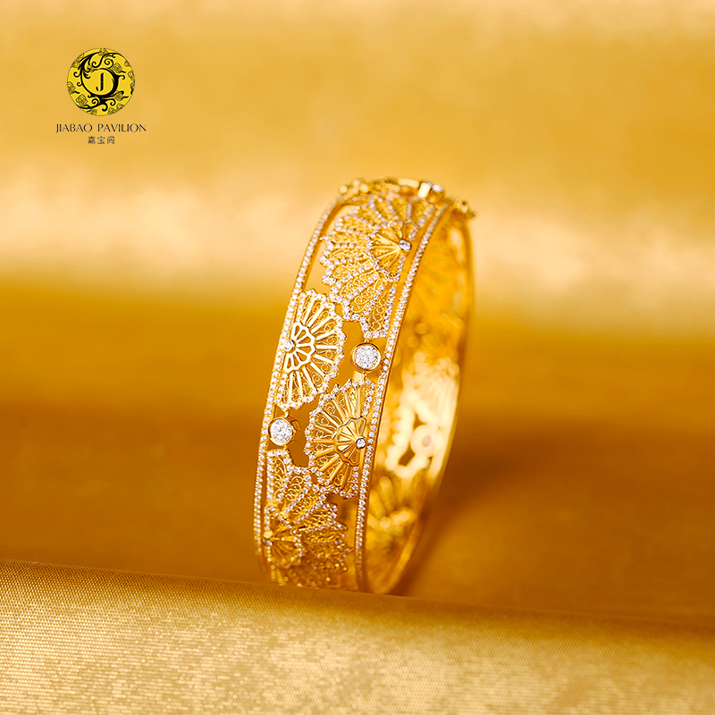 【華扇系列】中國折扇元素結合蓮花紋和卷草紋設計,融合花絲工藝編製而成,詮釋了中華民族善良謙遜的優良品質和高潔的品格。